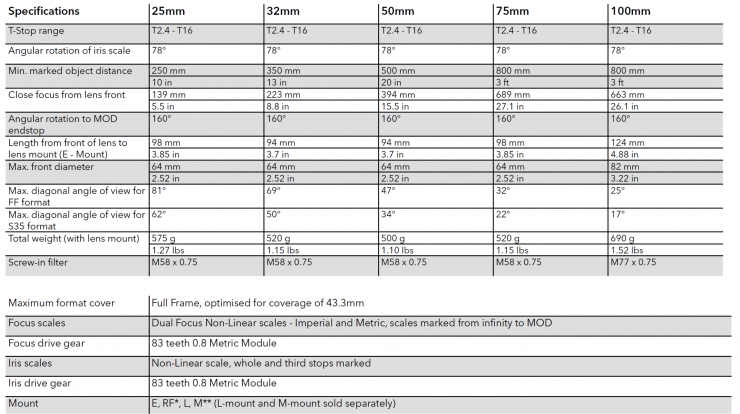 The lenses are claimed to offer outstanding definition and resolution while featuring a beautiful fall-off towards the edge of frame. This ‘Look’ is supposed to replicate the famous cinematic look achieved by the legendary Speed Panchros.