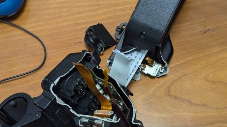 It seemed that all the boards in the handle were still intact after the fall, so I removed them from the broken part, and after taking a couple of deep breaths, I connected them to the camera and powered it up.