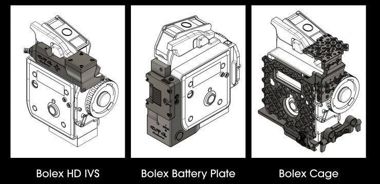 These include an HD IVS, Battery Plate, Custom Cage, Bolex Bayonet to ARRI PL adapter, and Bolex Bayonet to C Mount adapter.