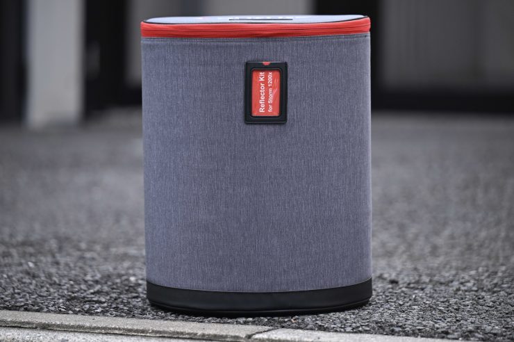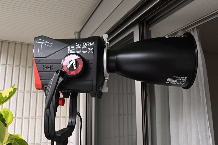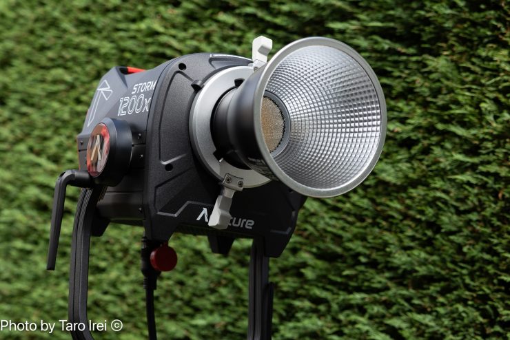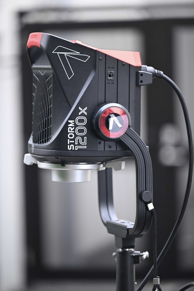 The Aputure STORM 1200x consists of a light head and a large separate power supply/controller. Aputure has done a good job of keeping the size of the light head to a minimum.