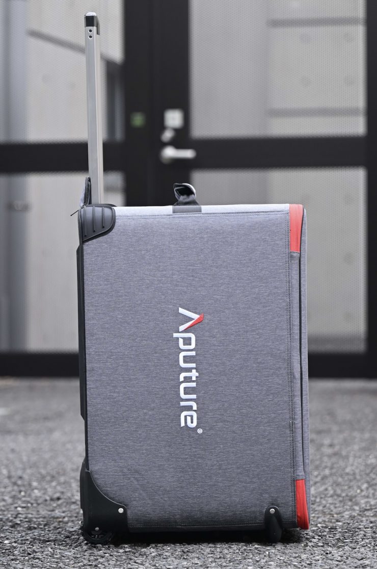 The included rolling case is decent enough, but I do wish that Aputure had included more carrying handles. I found it very hard to carry as there are no carry straps on the top or sides of the case.