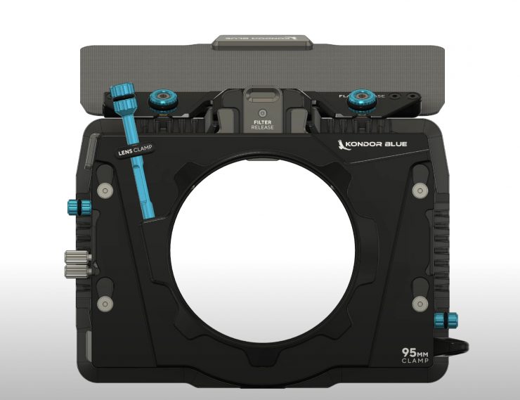 KONDOR Blue has made every adjustable fastener captive and the hood design now features several new additions including increased strength and rigidity. It also has a four post-release system which allows you to loosen the two knobs inside the hood. You can then attach any of the KONDOR Blue accessories such as the single or dual stages or even directly attach the 95 mm or 114 mm lens clamp that allows for fast and secure changes to your matte box. It also opens up other options for additional third-party customization to use ARRI and Bright Tangerine backs.