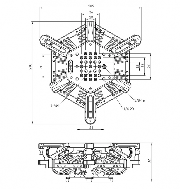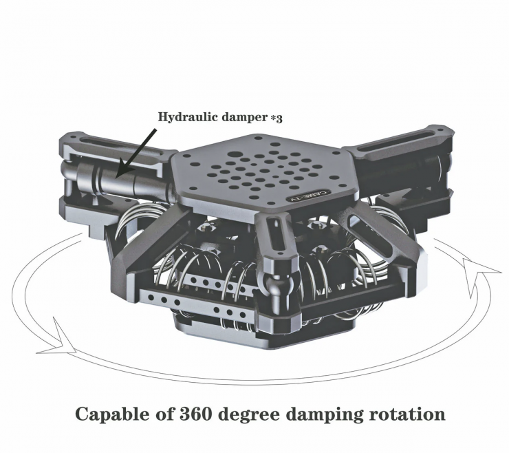 The new CAME-TV GS-Starship Isolation Mount with Shock Absorbers is suitable for the entire series of DJI Ronin stabilizers. The top and bottom plates are made from the same piece of aluminum plating that has been CNC machined, with 1/4″-20 threaded holes.