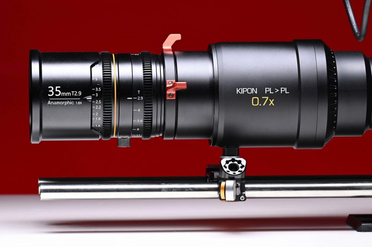 The Focal Reducer also lets you breathe new life into older camera systems. Above you can see the Kipon PL-PL 0.7x focal reducer on a Sony F35.