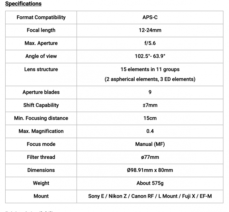 Laowa has announced its new 12-24mm f/5.6 Zoom Shift lens. This APS-C lens for mirrorless cameras combines two features in one compact package.