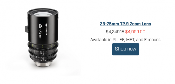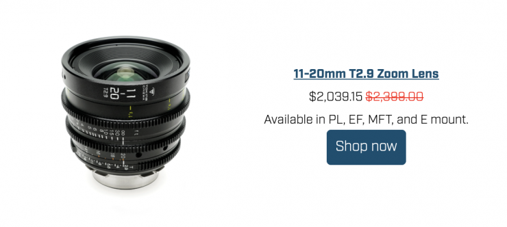 There are good deals on the 11-20mm T2.9, 25-75mm T2.9, 50-135mm T2.9, 1.6x Expander and the full suite of Tokina Vista primes.