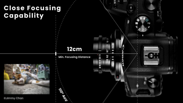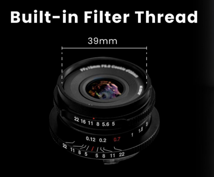 The lens has a close focusing distance of 12 cm and a 39mm filter thread.