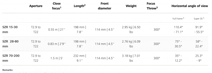 The prices are focal lengths are somewhat in line with other high-end cinema zooms that are on the market.
