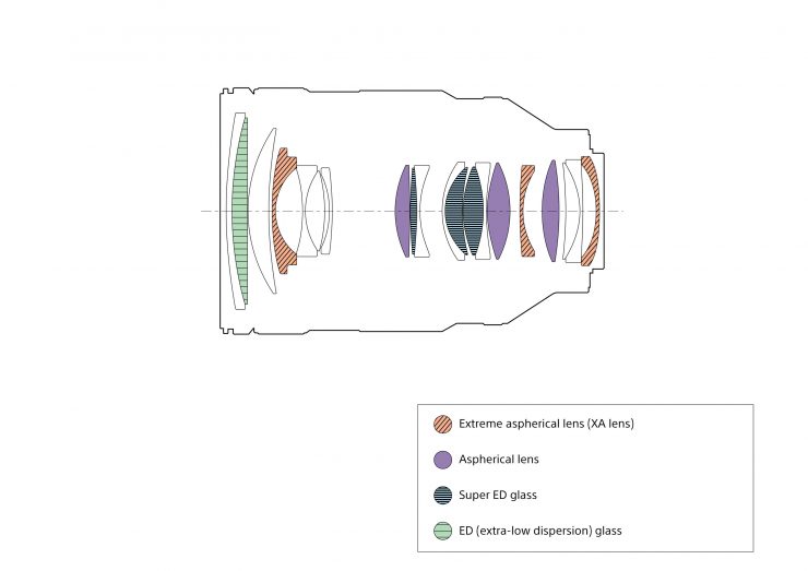 Sony states the 28-70mm F2 G Master produces sharp corner-to-corner results throughout the entire zoom range, even while shooting wide open at F2. The high-resolution output is made possible by the three XA (extreme aspherical) elements and three aspherical elements built within the lens that minimize aberrations.