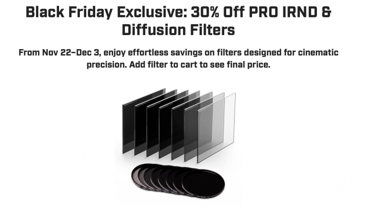 Tokina Cinema USA has a Black Friday Exclusive deal where you can save 30% off PRO IRND & Diffusion Filters.