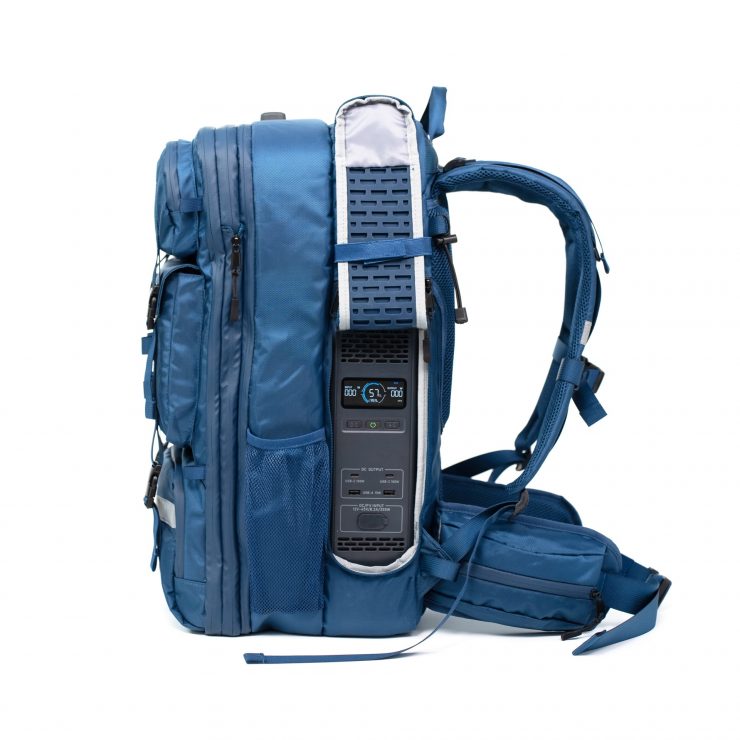 The BluePack backpacks are designed with organized compartments, MOLLE straps, versatile hooks, and mounts. This means your camera, drone, and personal items are neatly tucked away in sections while the ultra-thin power station continuously charges your gear.