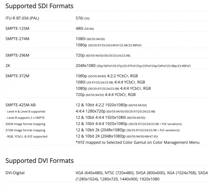 FSI’s 3rd generation Color Fidelity and LUT Interpolation Engine (CFE3) houses a multitude of calibration and Look LUT memories for highly accurate color reproduction and effective look management. Instantly select from Rec709, EBU, SMPTE-C, DCI P3, Rec2020 Emulation*, Native Wide Gamut, and Custom User Generated color spaces.