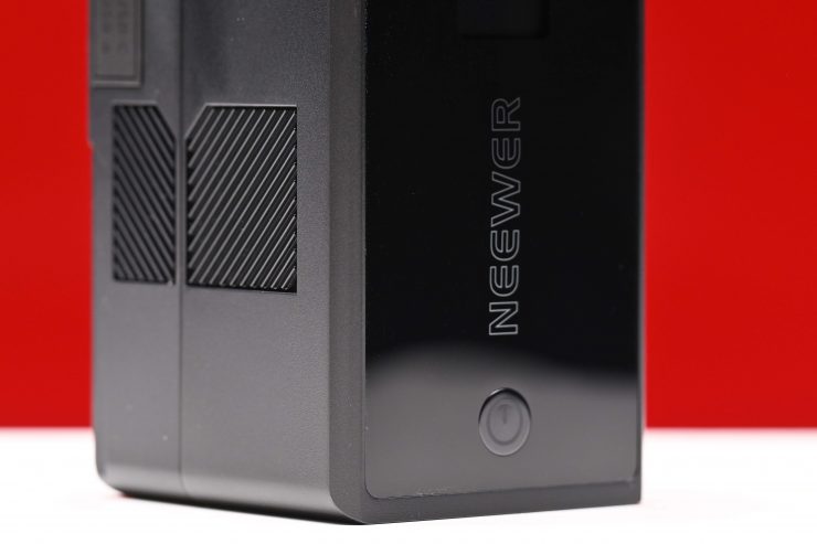 The NEEWER PS150E does have two small gripping areas on both sides of the battery, however these aren’t recessed. I would have preferred to have seen a longer and larger gripping material on the sides of the battery because the casing is quite slippery and this can make it a little difficult to hold onto. In inclement weather conditions, this could potentially be a problem. I also found it a little hard to hold onto when wearing gloves.