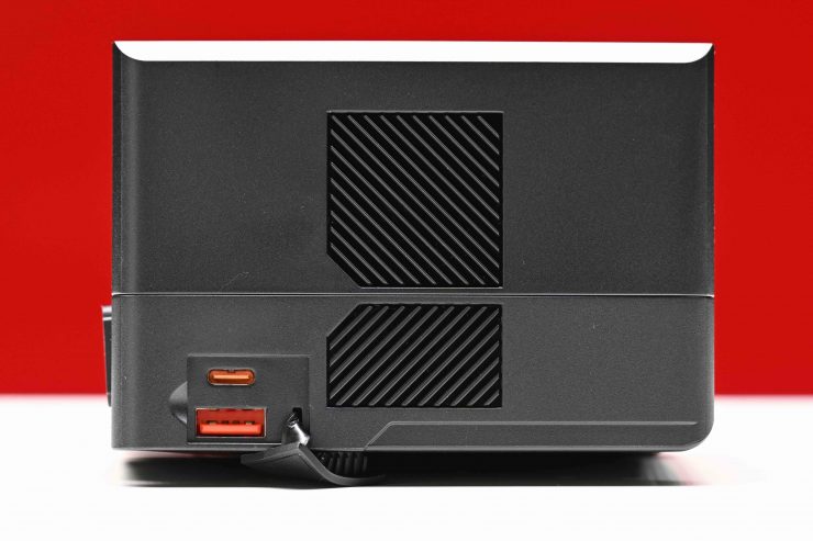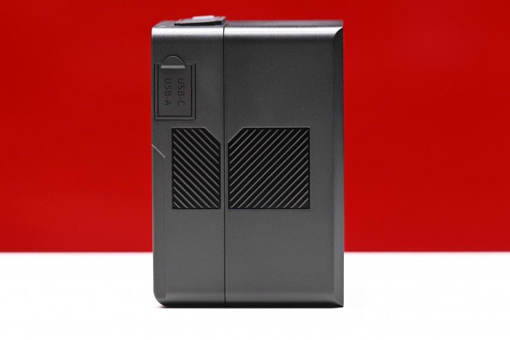 The USB-C port and USB-A ports are located on the left-hand side of the battery.
