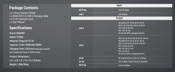 The NEEWER PS150E is a follow-up to the PS099E 99Wh and it is being targeted as an affordable, entry-level v-mount battery solution.