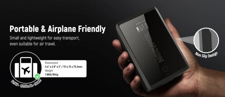 Being 150Wh also makes it a good option for anyone who travels a lot and uses cameras, accessories, or lights that can be powered via flight-safe batteries. Having the added ability to power laptops and other equipment via USB-C is also very useful. The slight caveat, at least in my opinion, is that the casing of the battery is quite slippery which does make it a little hard to hold. Yes, it’s easier to hold than the NEEWER 99Wh version, but it still isn’t as easy to hold as some of the other competing batteries.