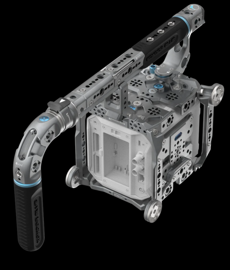 The Top and Bottom Plates take up half of the area front to back. These plates are fully symmetrical from left to right. This is ideal for several use cases, for instance when operating on a gimbal, as it cuts the cage weight in half while providing essential mounts. Cages A & B include two sets of Top and Bottom Plates and can be rigged with the Pro-Blade SSD Top Handle with the new dual NATO mounting kit.