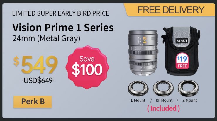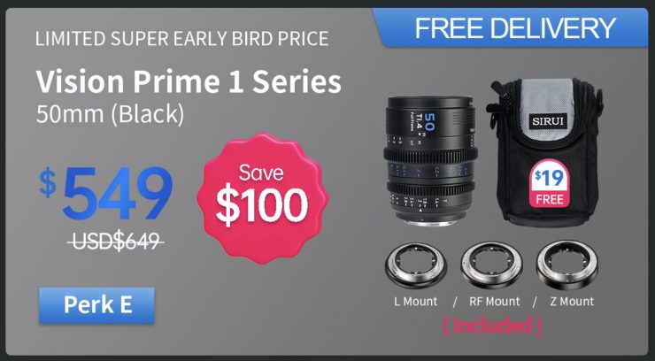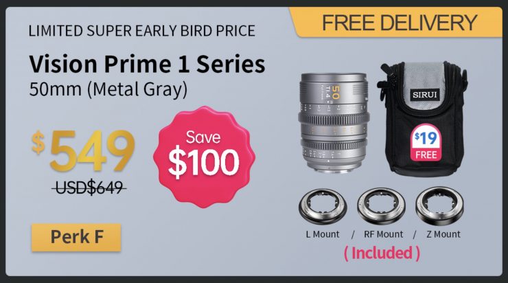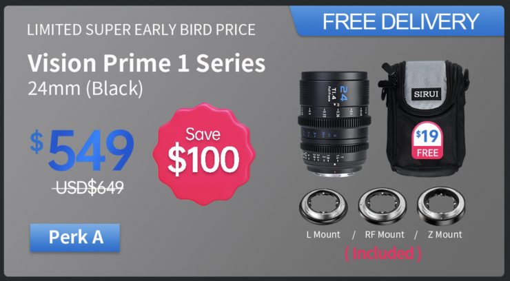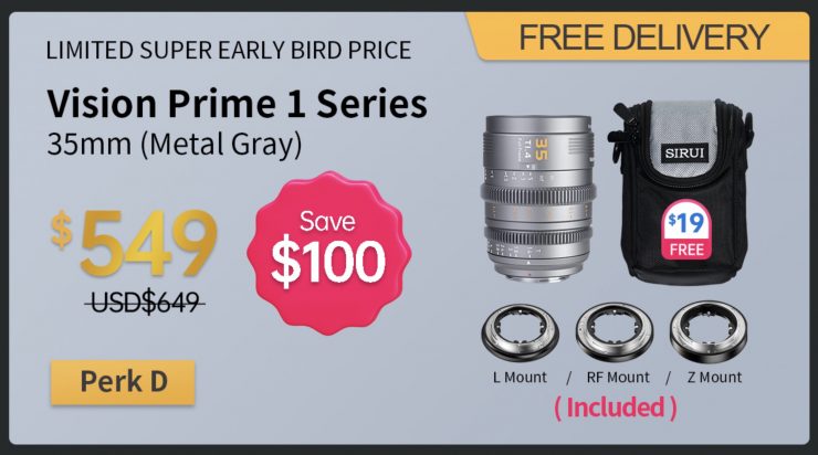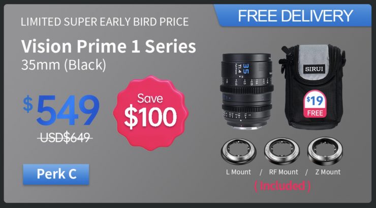 The SIRUI VISION PRIME T1.4 Cine Lens Series will soon be available on Kickstarter, for $549 USD each, or $1,599 USD for a set of three. When backing any crowd funding project please use your best judgment as there are no guarantees.