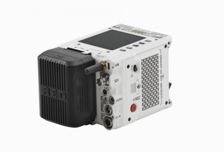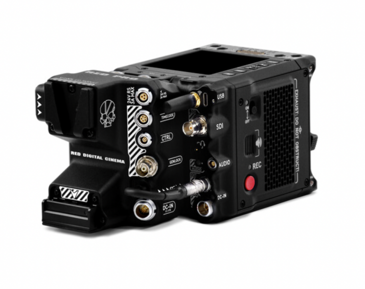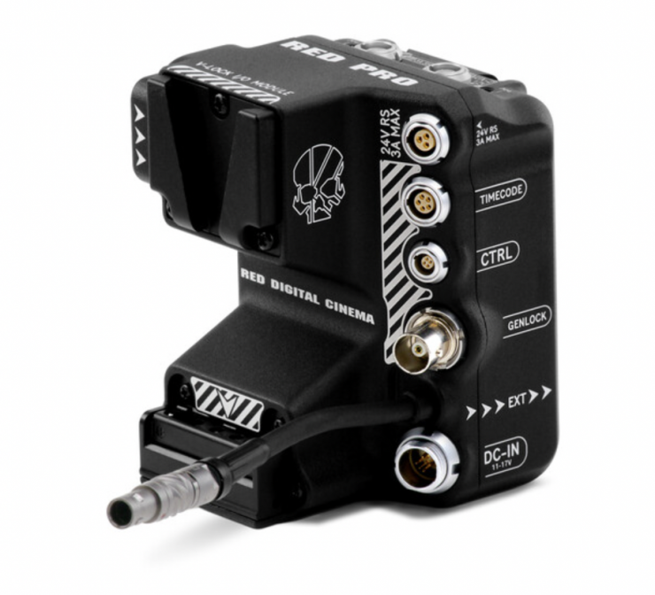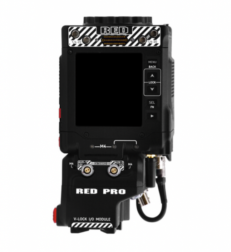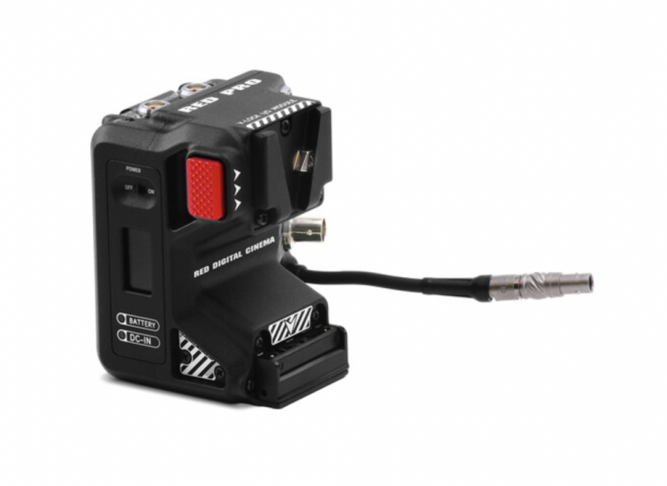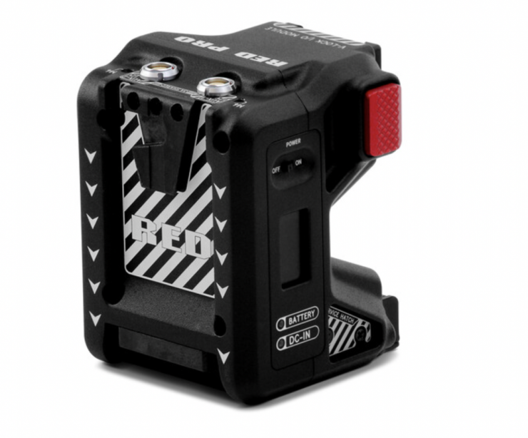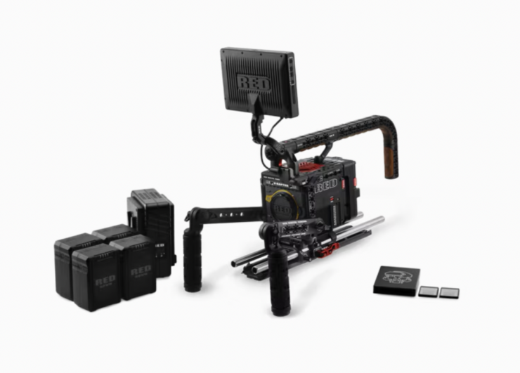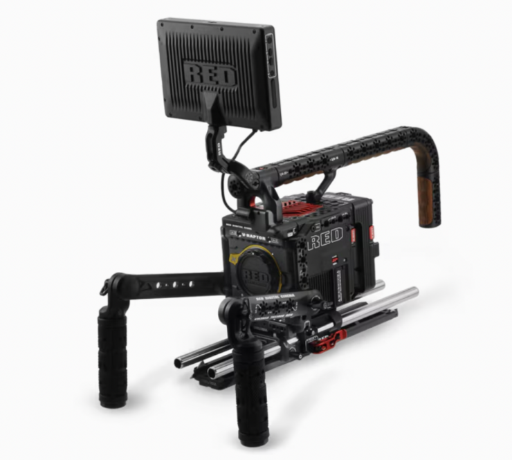 RED has accessories including the RED Compact EVF Pack and V-RAPTOR Advanced V-Lock Plus & Gold Mount Adapter Plus battery adapters. The EVF Pack is available to order for $4,950 USD (standalone EVF: $3,450 USD).