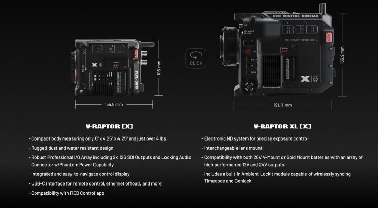 The V-RAPTOR XL [X] and V-RAPTOR [X] both feature a 8192 x 4320 Global Shutter Full-Frame VV Sensor with a claimed 17+ stops of dynamic range.