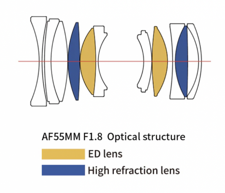 The optical construction of the lens consists of 11 elements in 8 groups and it has 9 aperture blades.