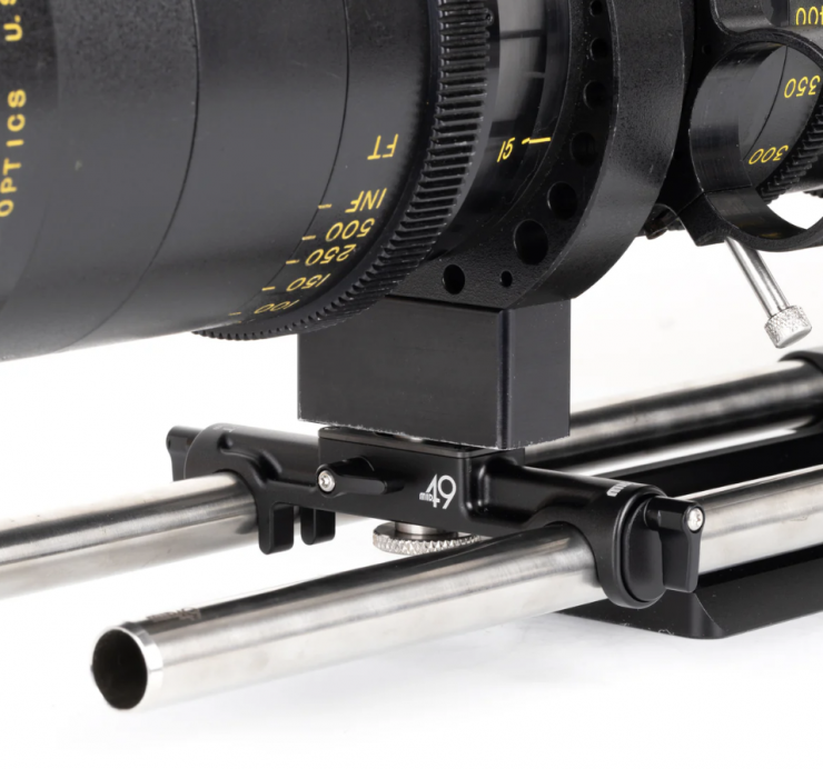 If additional distance is needed, consider adding the Adapter and Y Bracket Set ($254 USD), which includes two lengths of 3/8-16 extension, stainless steel 1/4-20 and 3/8-16 caps, and a rolling Y bracket for lenses that need support under a rotating lens barrel.