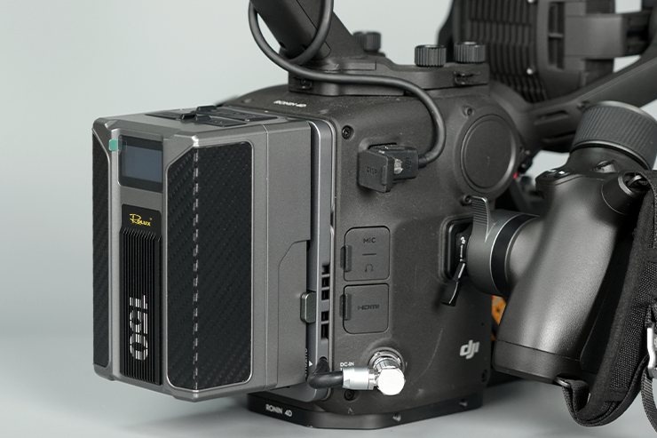 With its 6-pin 1B DC-IN wide voltage input (DC 12- 30V) connector, the plate can efficiently manage power. Rolux recommends using a 14.4/14.8V battery capable of sustaining at least 15A of continuous current. This translates to at least 180W of power at 12V to prevent power failures, particularly when the Ronin 4D’s Z-axis activation demands peak power.
