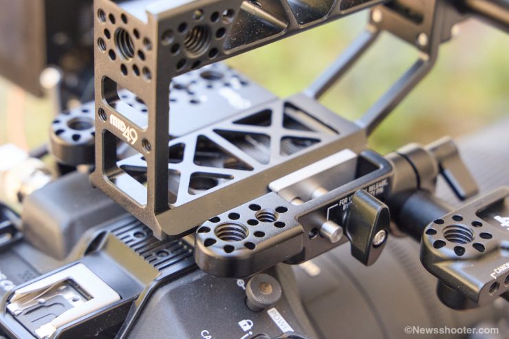 With most cages, the entire camera is caged in, but the MID49 design has the right side open. I like that I can access the C80 grip without the feel of a cage in my hand, but there are times when extra mounting options are needed, and that is where the Right-Side Bracket comes in handy.