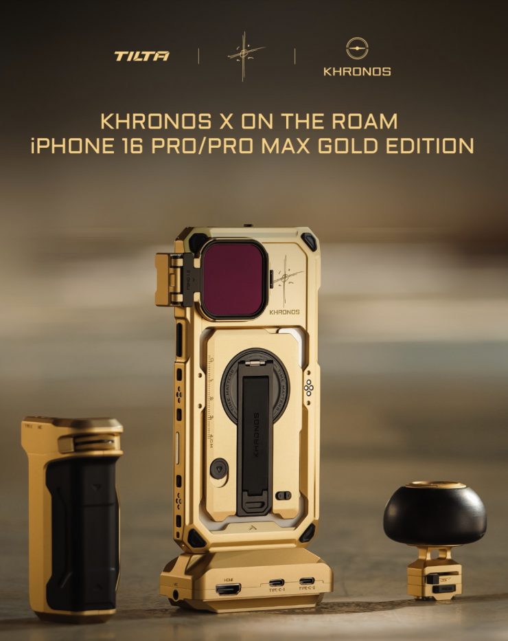The Tilta Khronos x On The Roam Gold Edition for iPhone 16 Pro / Pro Max was designed for filmmakers, adventurers, and storytellers.