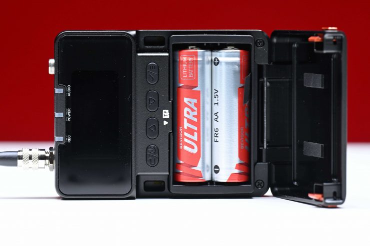 According to Saramonic, the supplied (non-rechargeable) 1.5V Lithium-ion batteries will power the K9 RX for 8 hours, and a TX unit for 9 hours. Now, Saramonic doesn’t state under what conditions they are, or whether this is with internal recording taking place.