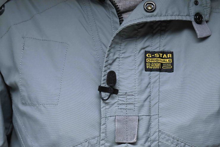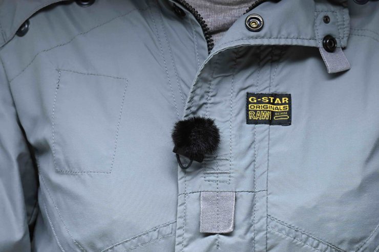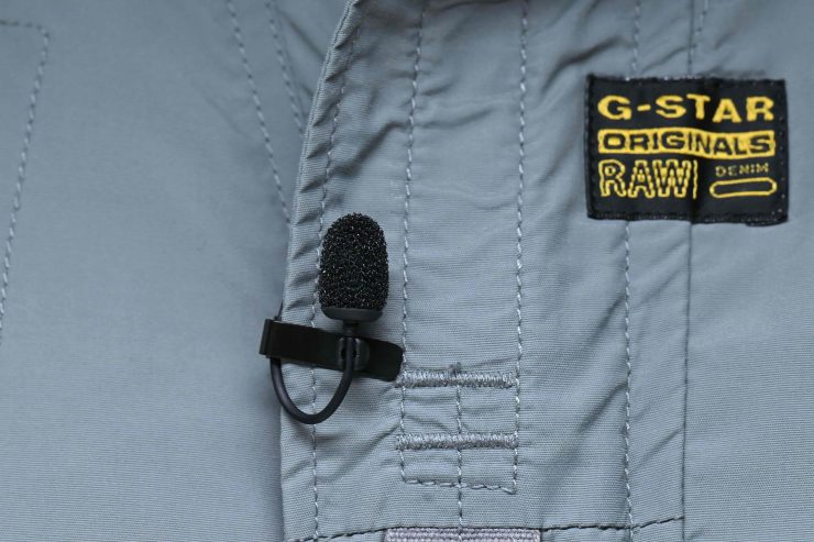 Above you can see what the lavalier microphone looks like when it is being used. It’s not tiny, but personally I try to hide lavalier microphones wherever possible.