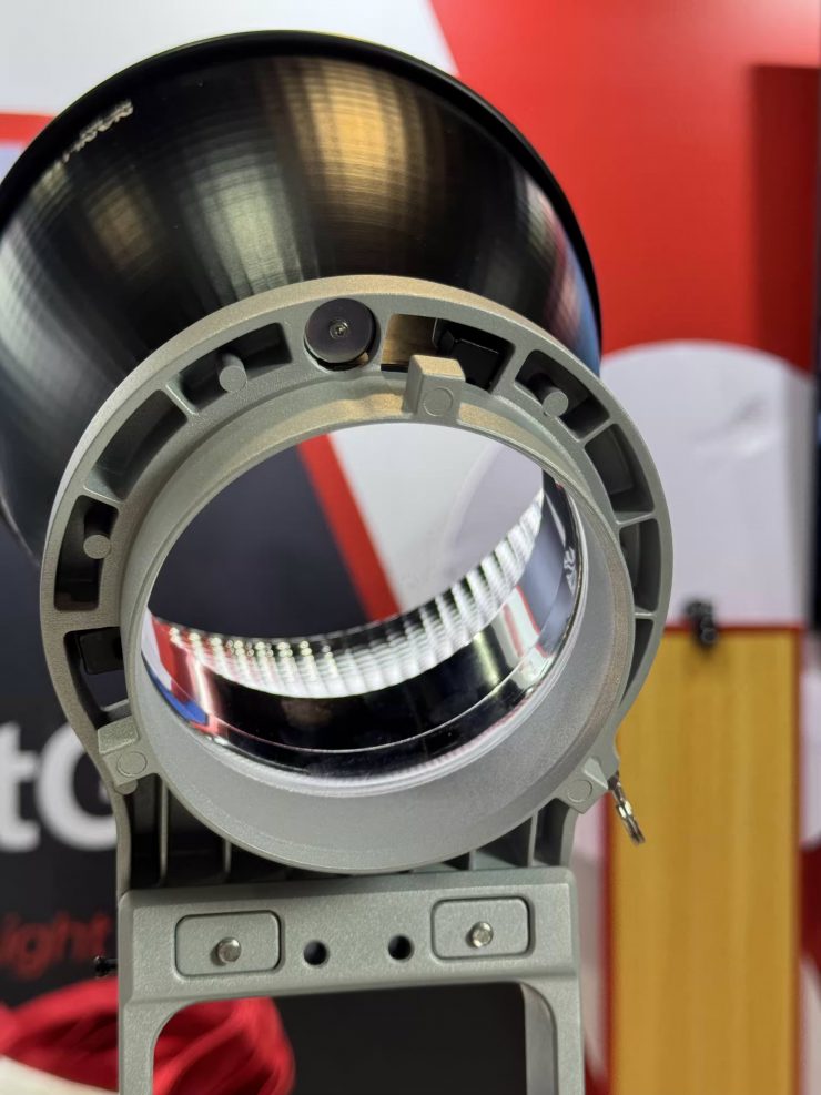 If you do attach a light via the Bowens mount, it will be slightly offset by an inch or so. This will mean that there will be a very slight decrease in the beam angle, but Falcam told me that it was minimal. Just how well it works with Fresnels and other optical attachments remains to be seen.
