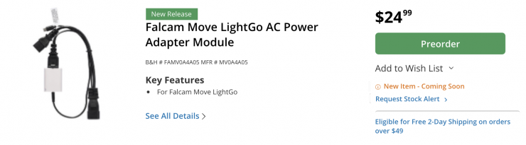 The Falcam Move LightGo is now available to purchase for $249 USD.