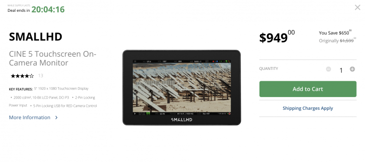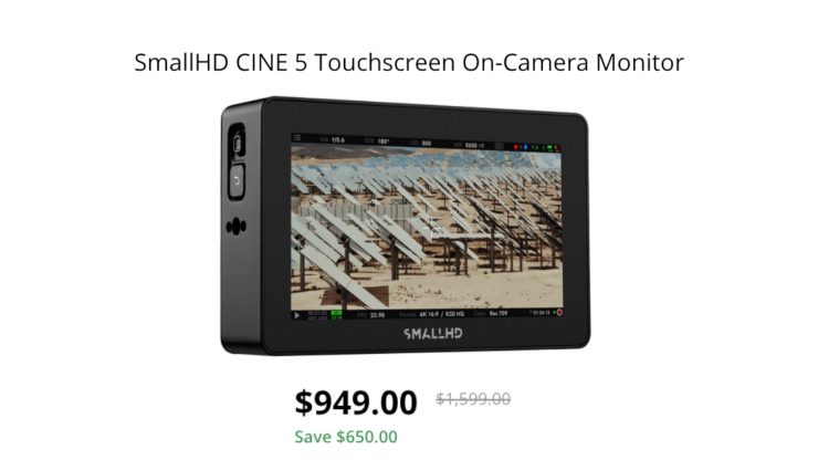 The SmallHD CINE 5 Touchscreen On-Camera Monitor is on sale for $949 USD, which is a discount of $650 USD.