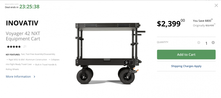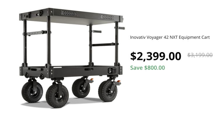 The Inovativ Voyager 42 NXT Equipment Cart is on sale for $2,399 USD, which is a discount of $800 USD.