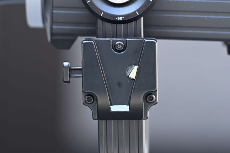 As I mentioned earlier, the Aputure STORM 80c comes with a robustly made yoke that allows you to have a good tilt range when light modifiers such as softboxes are attached.