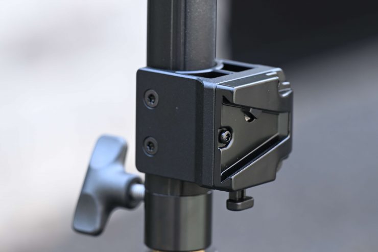 You can also purchase an optional Aputure Handheld Bracket with V-Mount and D-Tap Cable for STORM 80c, which retails for $79 USD. This also has a V-mount battery wedge plate, so you can attach a battery.