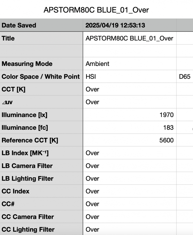 Above, you can see the scores for the Aputure STORM 80c at various CCT settings. Below, I have listed the figures as well.