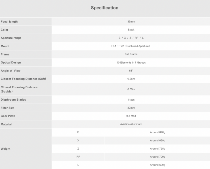 - Covers Full-Frame | T2.1 to T22 Aperture
