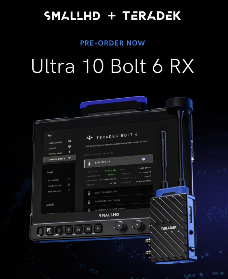 You can pre-order now and get SmallHD’s largest Bolt 6-integrated wireless monitor to date. Pricing starts at $6,899 USD.