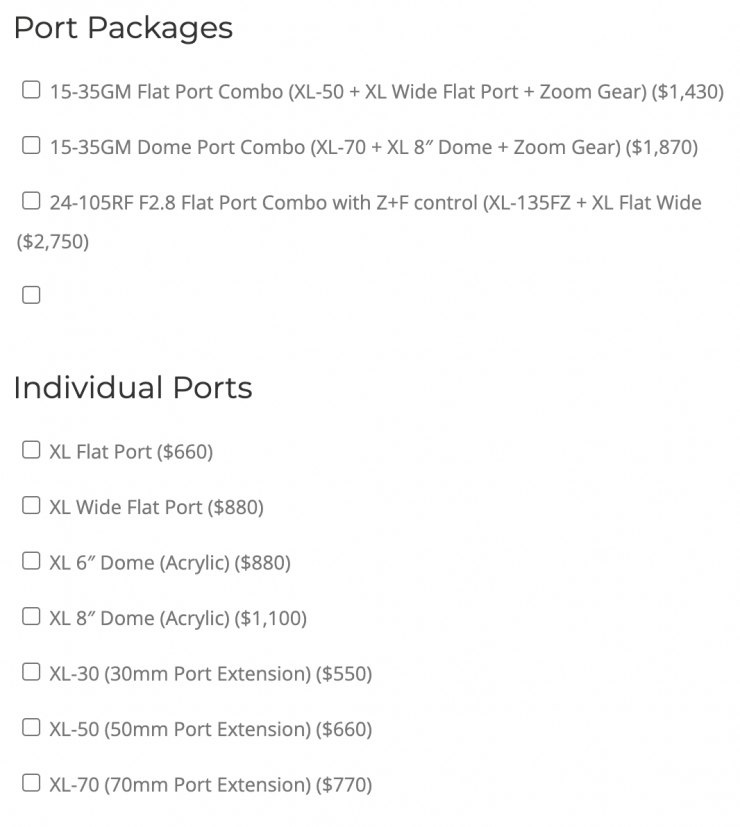 BASE price does NOT include a mandatory port option. You cannot use the housing without at least one port.