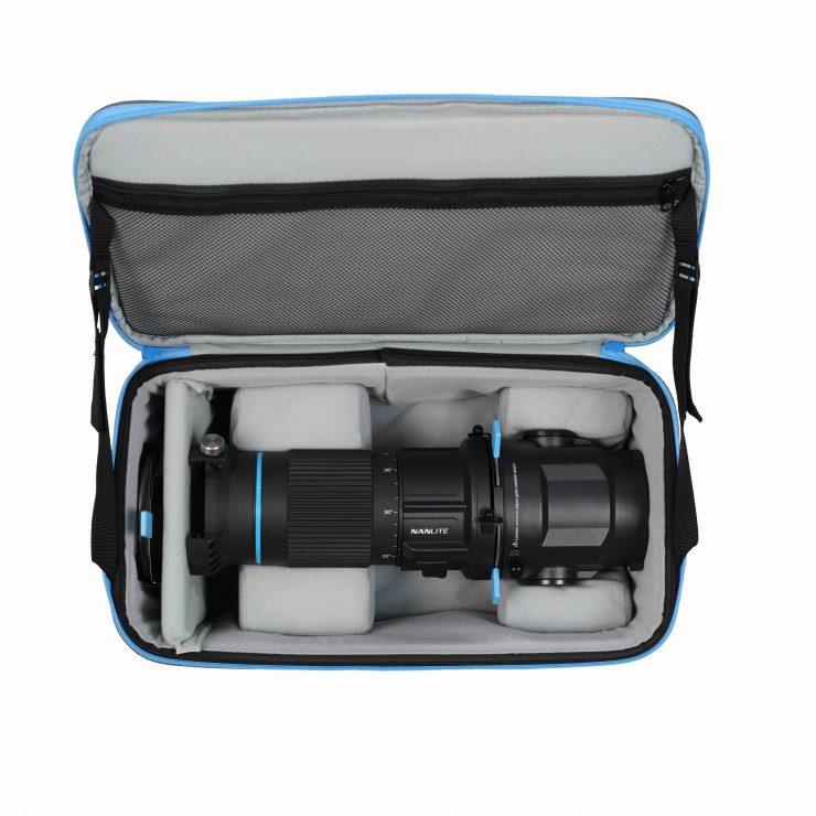 NANLITE states that the lens design allows for smooth and precise focusing or defocusing. It features an aspherical lens to reduce distortion, optical coatings to enhance light transmission and minimize chromatic dispersion, and a matte inner barrel to control stray light, the projection attachment delivers image clarity and sharp beam edges.