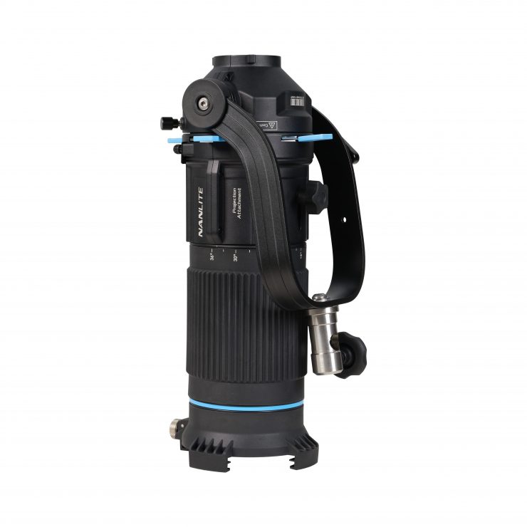 Precision beam adjustment is achieved via a large, easy-to-access zoom ring. The projection attachment has its own yoke. It also allows the setup to tilt significantly downward.