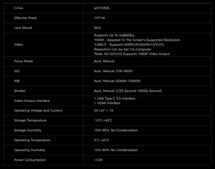 - 4/3” Sony IMX Sensor | 2.9 um | Quad Pixel