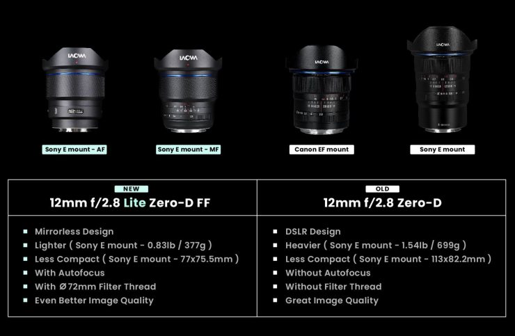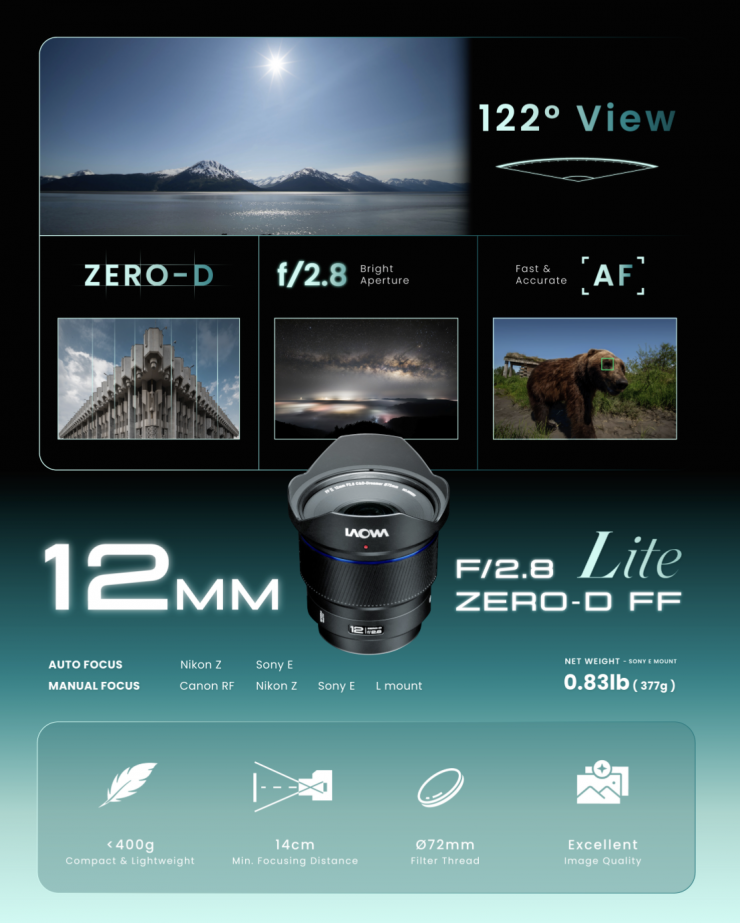 The Laowa 12mm f/2.8 Lite Zero-D FF retails for $699 USD.