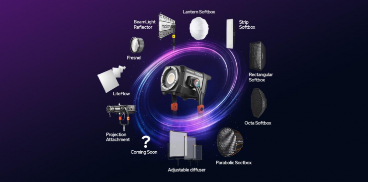 Equipped with a Bowens mount, the M300R is compatible with a wide range of standard modifiers. A full range of accessories is available, including softbox, Pro Beauty Dish, Projection Attachment, BeamLight Reflector, with additional options to be released soon.