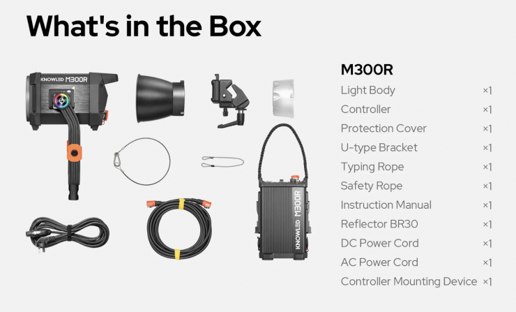 The Godox KNOWLED M300R RGB LED Monolight (Travel Kit) can be purchased now for $1,599 USD.