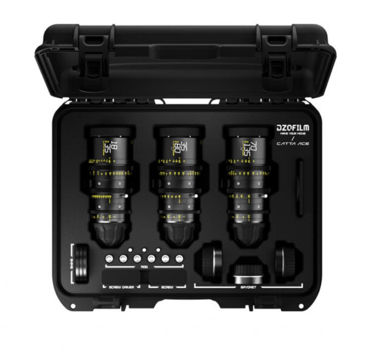 The DZOFilm Catta Ace FF 18-35/35-80/70-135mm T2.9 Cine 3-Lens Bundle (PL/EF, Black) is on sale for $6,239 USD, which is a discount of $3,360 USD.