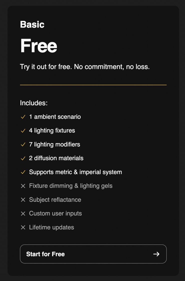LightCalc will add new lighting fixtures and diffusion materials to the app as they are released. Furthermore, they are actively working on a list of additional features that we plan to implement and gradually incorporate into LightCalc in the future.
