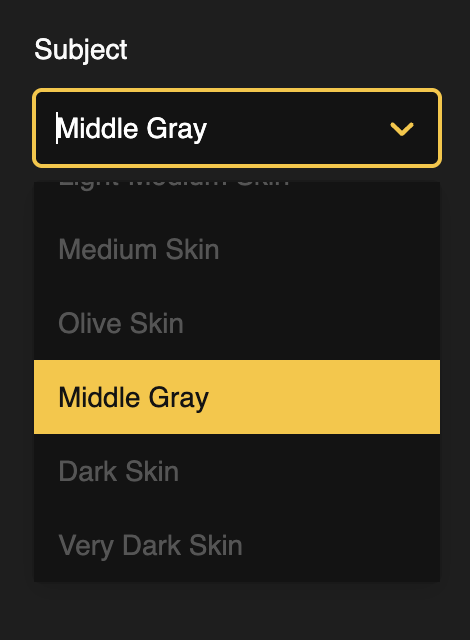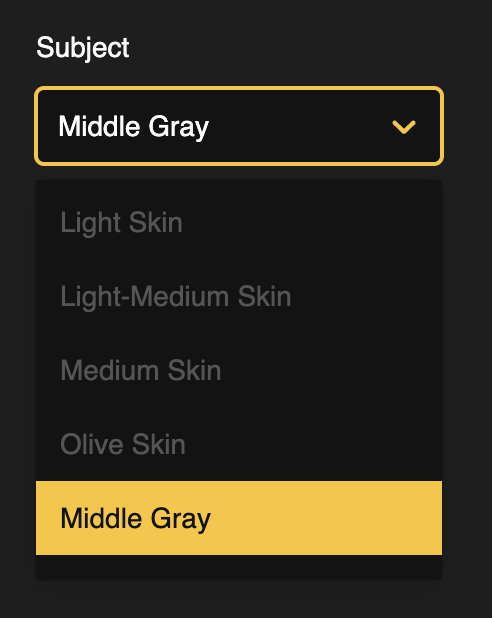 You can then choose what type of skin type your subject has, or you can just leave it as middle grey.